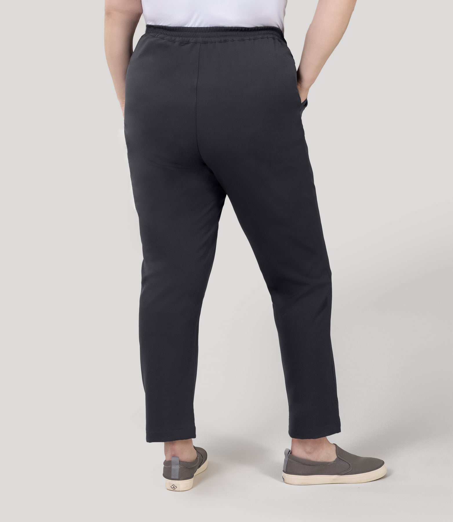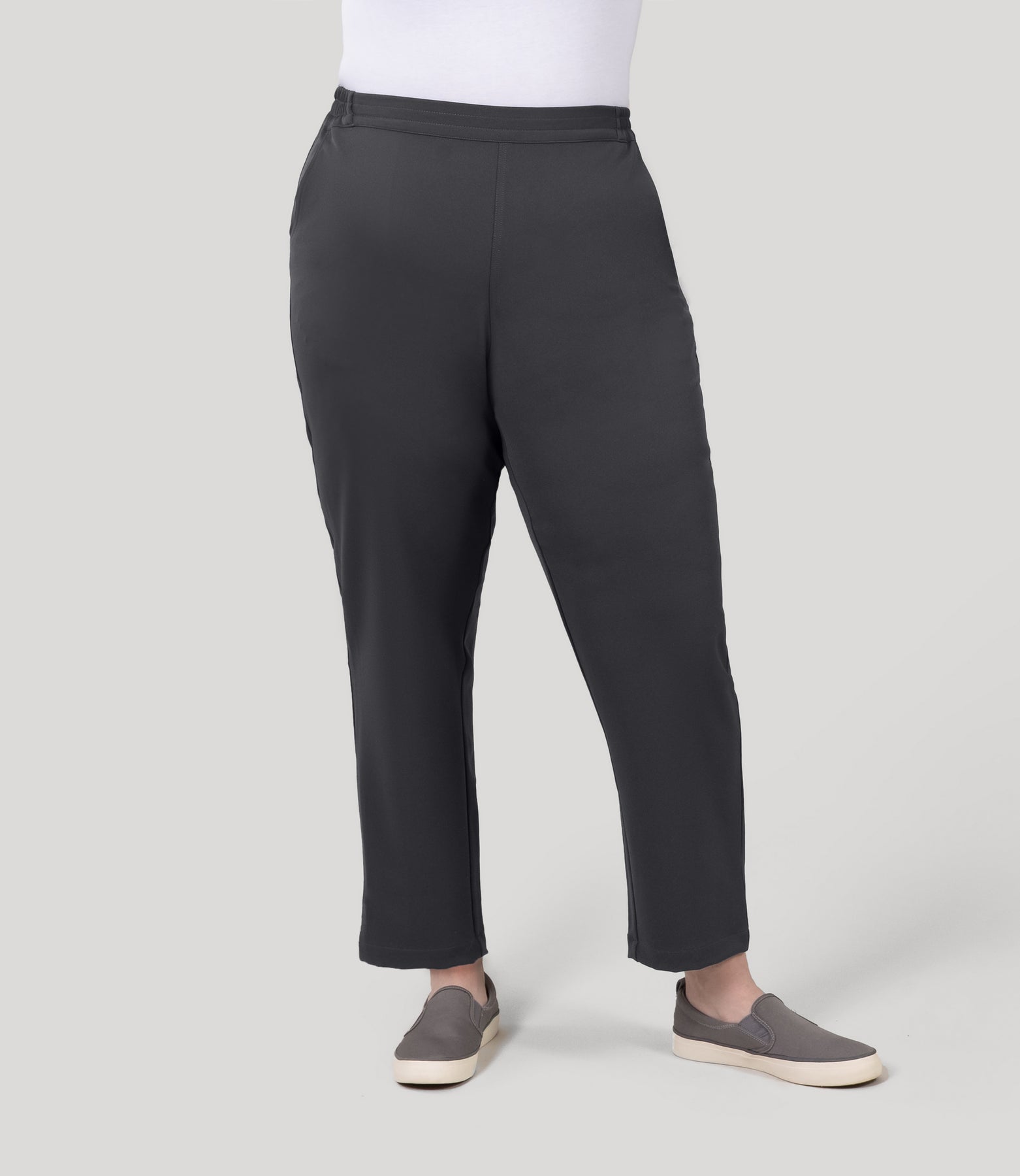 Say hello to your new favorite pant. The VivaFlexPull On Ankle Pant is all about making life easier—just slip them on and go. That flat front elastic waistband? Pure comfort without the fuss. And those front pockets are the real MVPs, keeping your phone and keys exactly where you need them. With four-way stretch that bends and moves with you, these plus-size pants are ready for whatever adventure comes your way. Comfort never looked so good. Imported